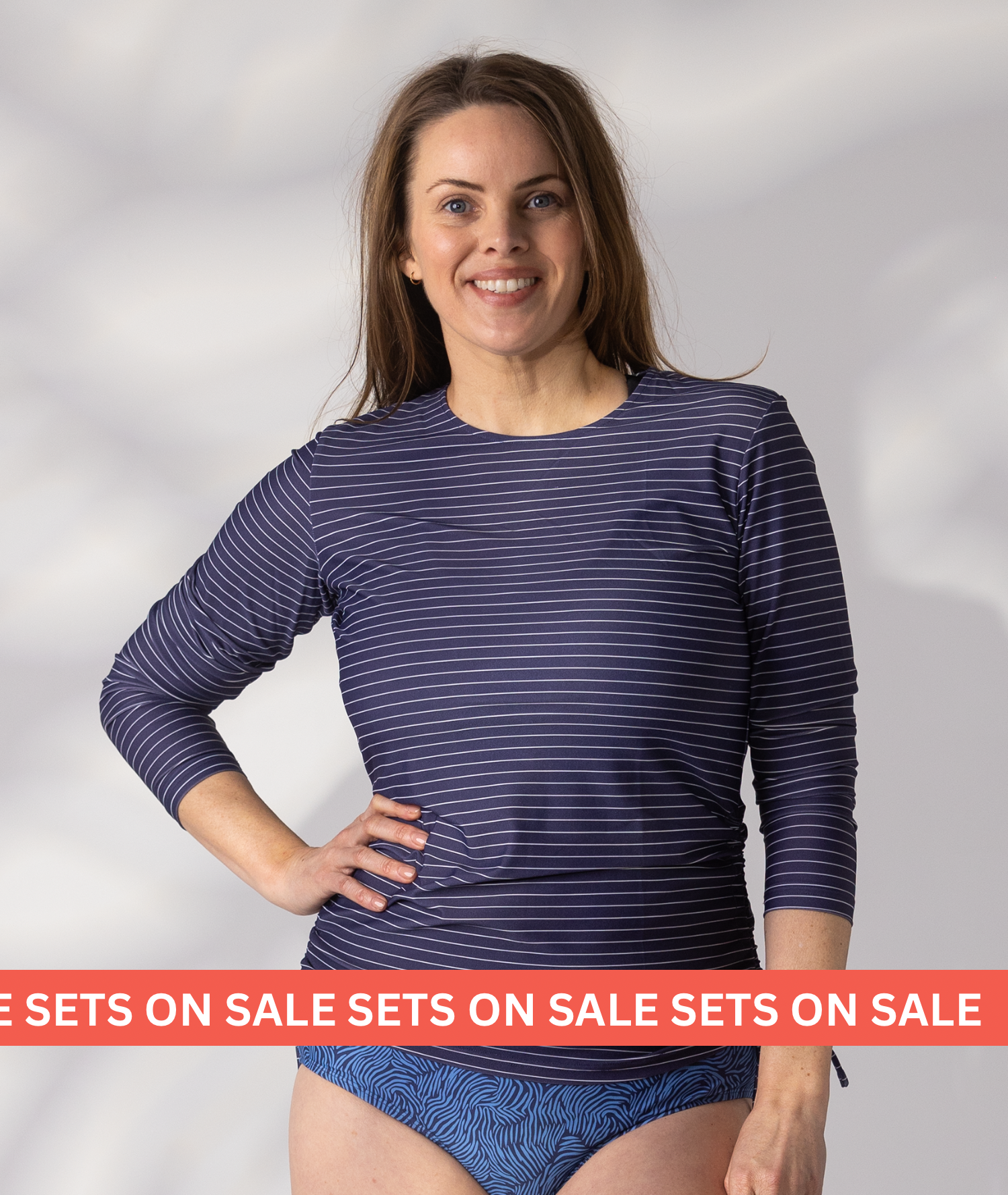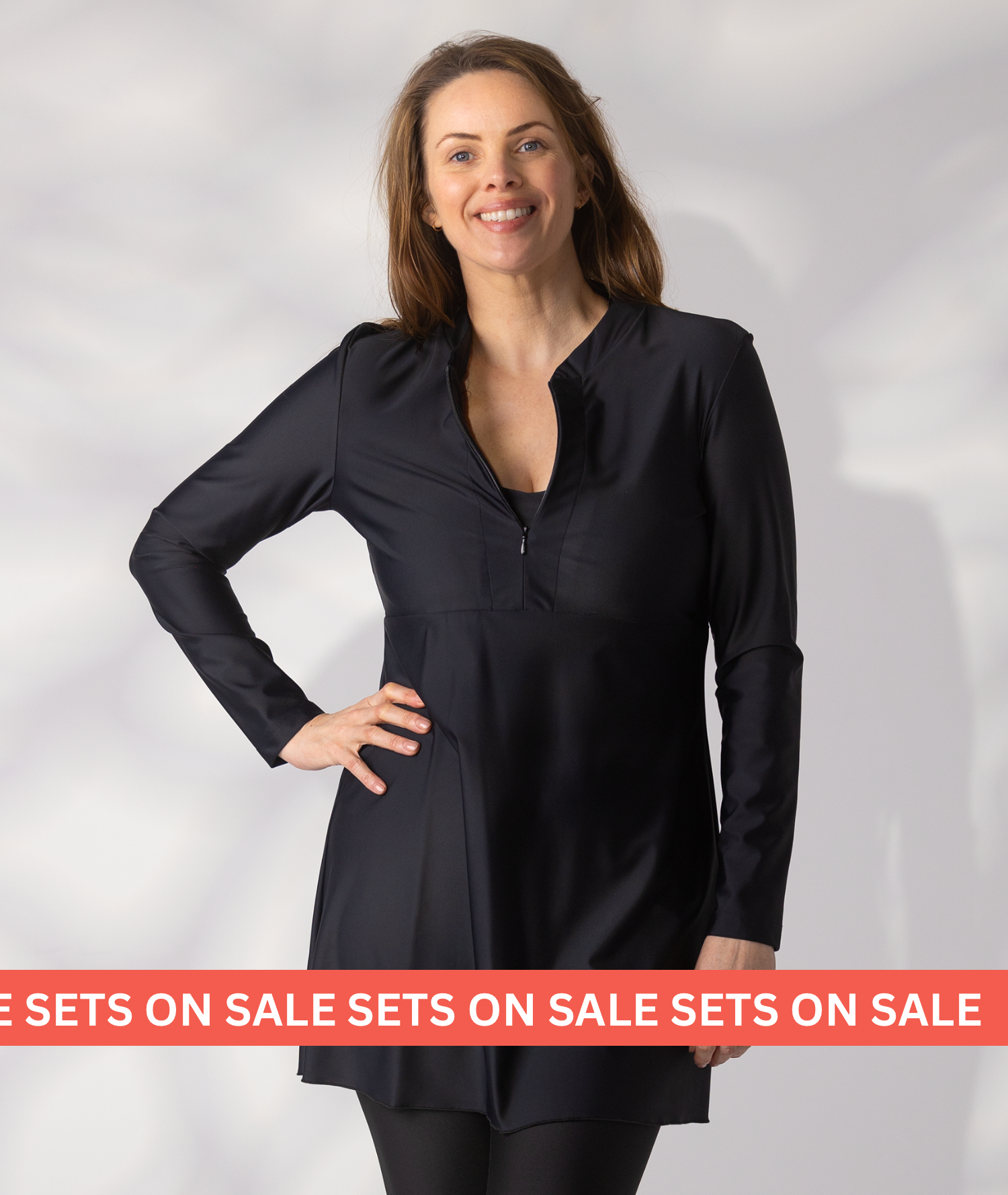 Our best selling sets are on sale, to hep you get back to the beach! Buy any swim rash top or swim dress, and get 50% off a pair of black leggings.