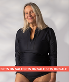 Zip Neck Rash Top - Black