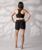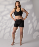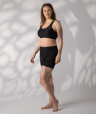 These Swim Boyleg Shorts in black feature a 12cm inseam for a stylishly shorter fit that flatters offers an alternative to a bather bottom but with a legging feel , whilst offering thigh-chafe protection. Made from UPF50+ compression fabric, they gently hold the tummy for enhanced comfort and confidence.