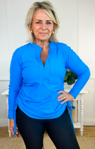 The Zip Neck Rash Top combines function and style with a UPF50+ rating for reliable sun protection. Its functional zip neck allows easy adjustment, while side ties enable customizable length to suit your preference. Designed to gently ruche across the tummy, it helps soften that area and defines the waist for a flattering silhouette. Perfect for active days in and near water, this top offers comfort and versatility without compromising on protection.