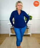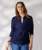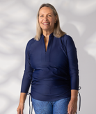 Zip Neck Rash Top - Navy