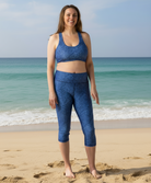 Our saltwater blue printed swim leggings are the same fit as our best selling crop legging and are the perfect addition to your beach or pool day. Designed with a wide waistband and compression fabric, they provide a firm and flattering fit for all your activities. Great for swimming, beach walking protecting you from thigh-chafe, of a trip to the gym or cafe.