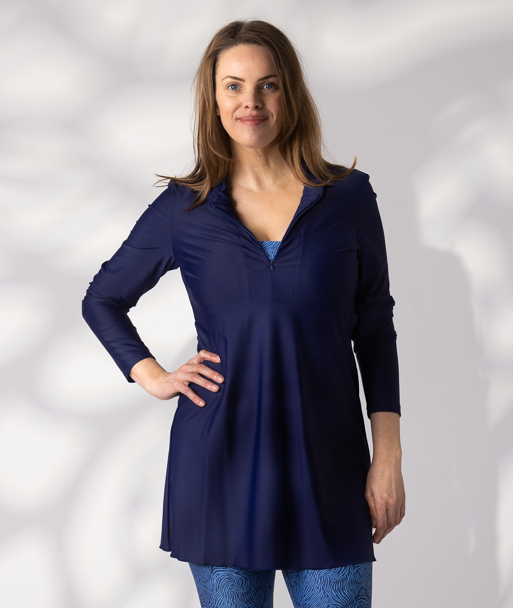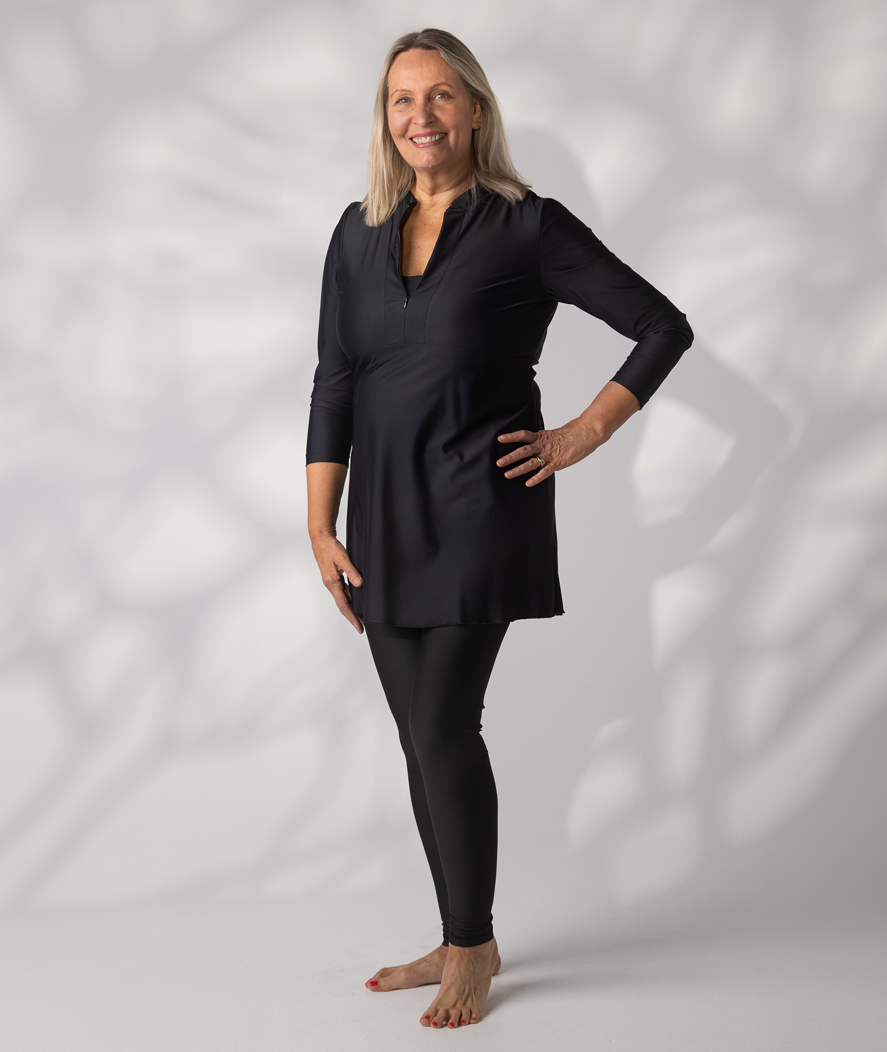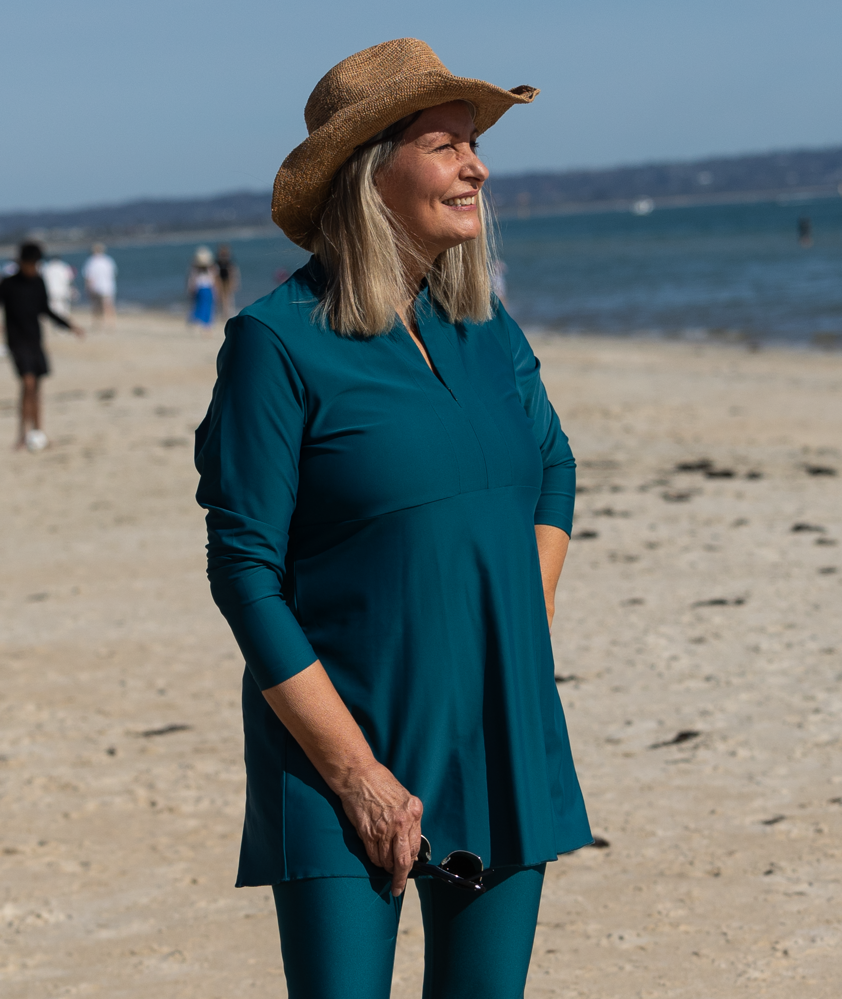 Suncheeter’s swim dresses are designed to help women feel confident, stylish, and comfortable at any age. Flattering A-line cuts provide coverage where you want it most, while lightweight, quick-dry fabrics keep you moving with ease. Every swim dress is made from UPF 50+ fabric, offering protection as well as style. Perfect for women over 50 who want flattering, modest swimwear that doesn’t feel frumpy, our swim dresses transition seamlessly from a dip in the ocean to a walk along the beach or a coffee at the café. Available in a range of colours and prints, they are the ultimate choice for women looking to get back to the beach with confidence.