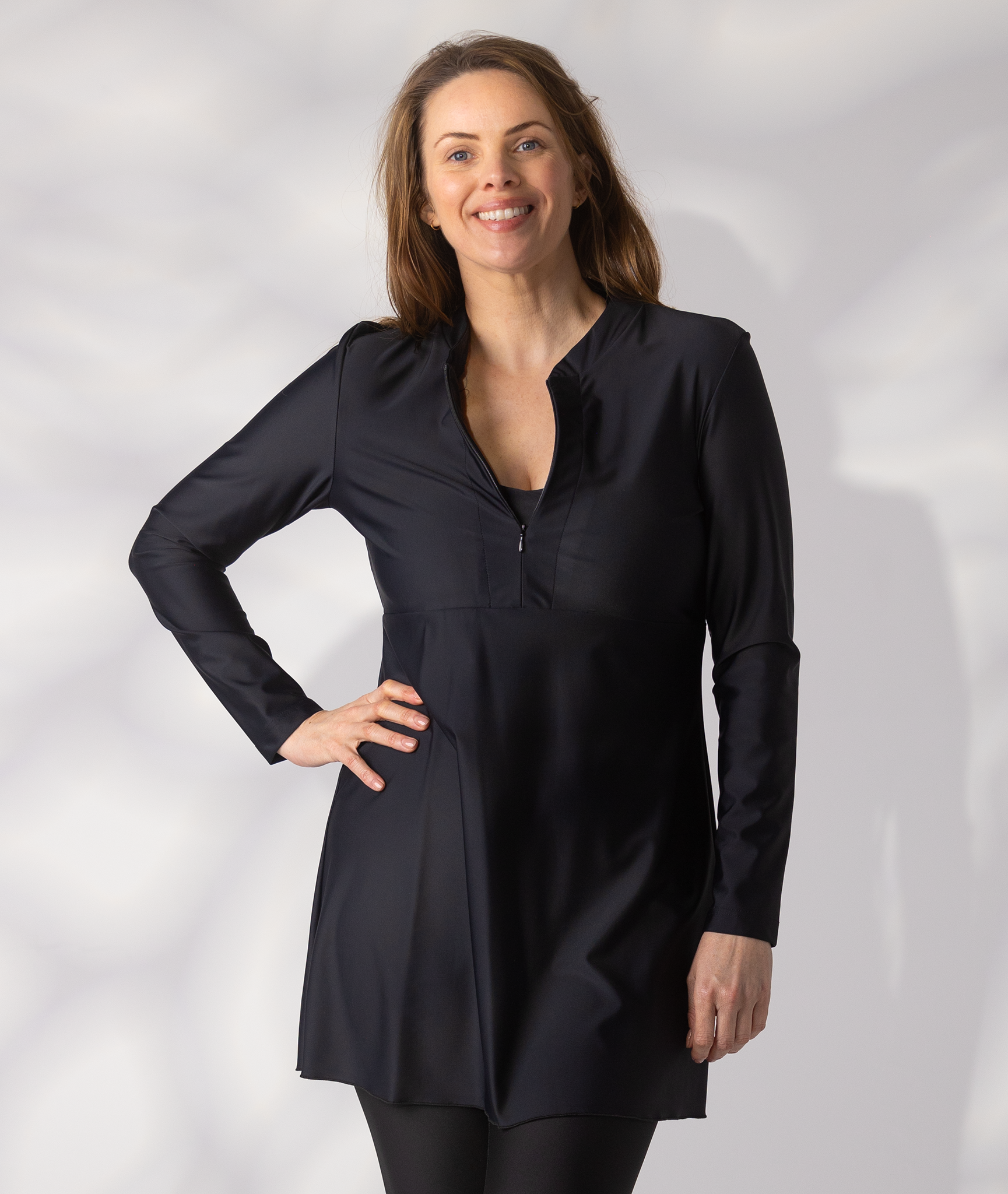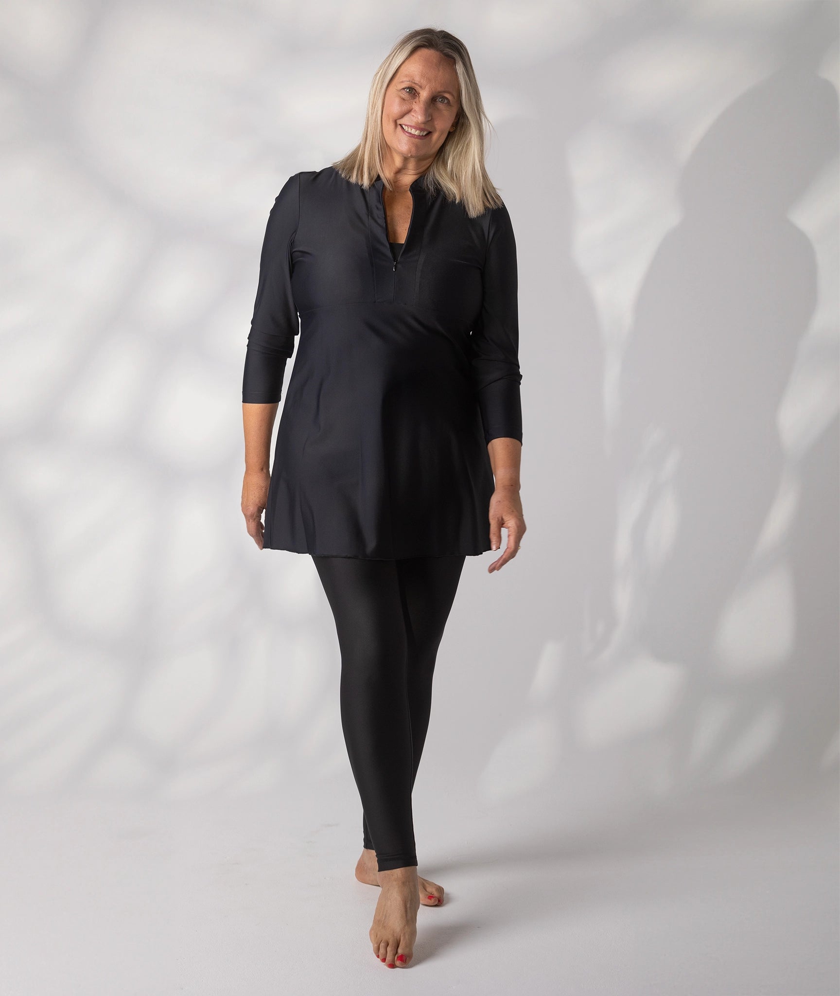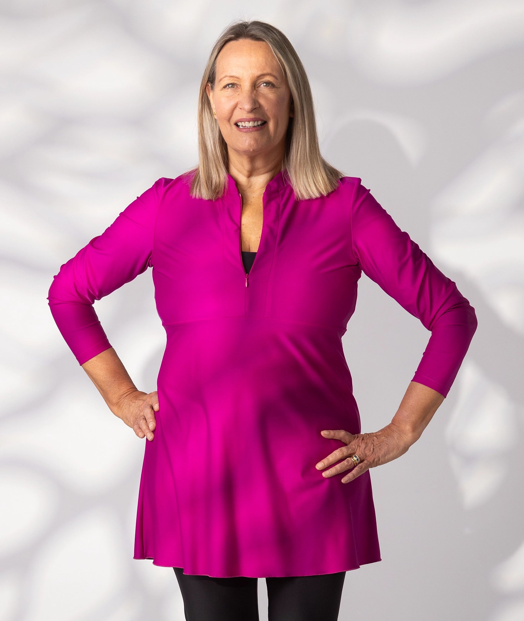 Suncheeter’s swim dresses are designed to help women feel confident, stylish, and comfortable at any age. Flattering A-line cuts provide coverage where you want it most, while lightweight, quick-dry fabrics keep you moving with ease. Every swim dress is made from UPF 50+ fabric, offering protection as well as style. Perfect for women over 50 who want flattering, modest swimwear that doesn’t feel frumpy, our swim dresses transition seamlessly from a dip in the ocean to a walk along the beach or a coffee at the café. Available in a range of colours and prints, they are the ultimate choice for women looking to get back to the beach with confidence.
