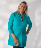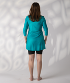 Our Swim Dress features a soft A line shape which is tummy friendly, and is a perfect cover up to a rounder torso