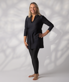 Our Swim Dress features a soft A line shape which is tummy friendly, and is a perfect cover up to a rounder torso