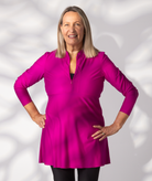 Our Swim Dress features a soft A line shape which is tummy friendly, and is a perfect cover up to a rounder torso
