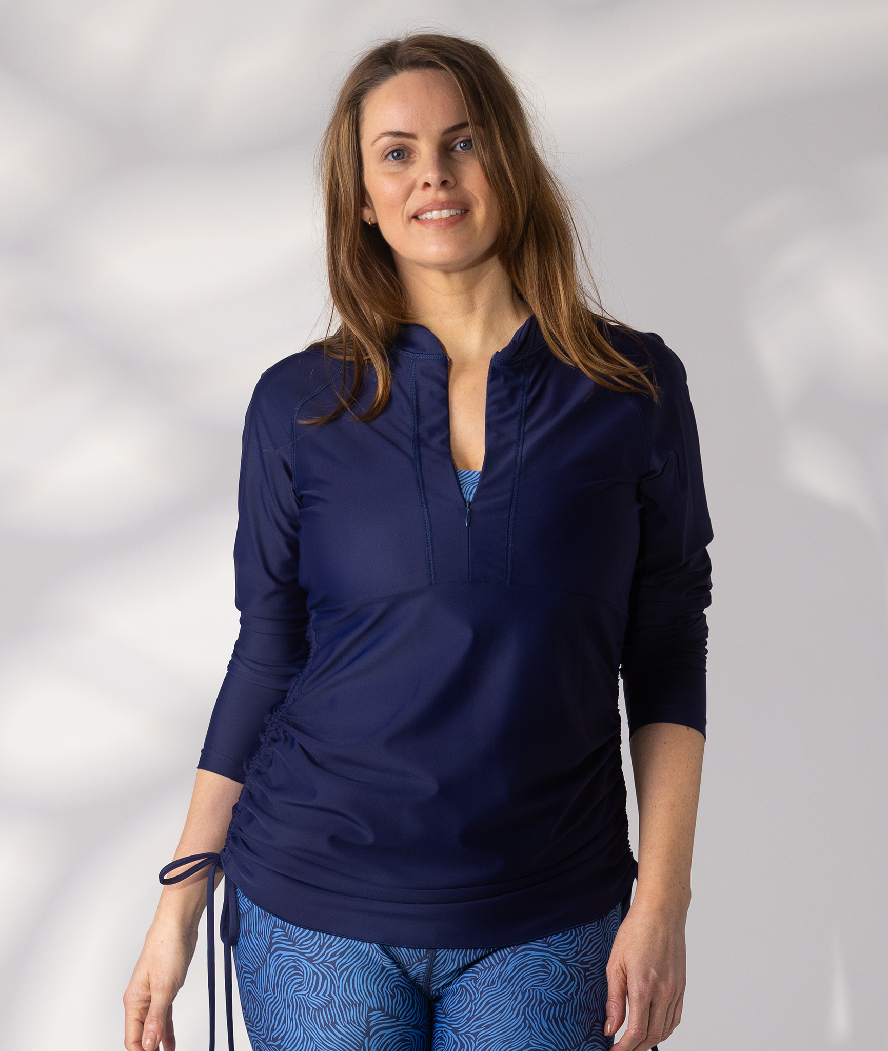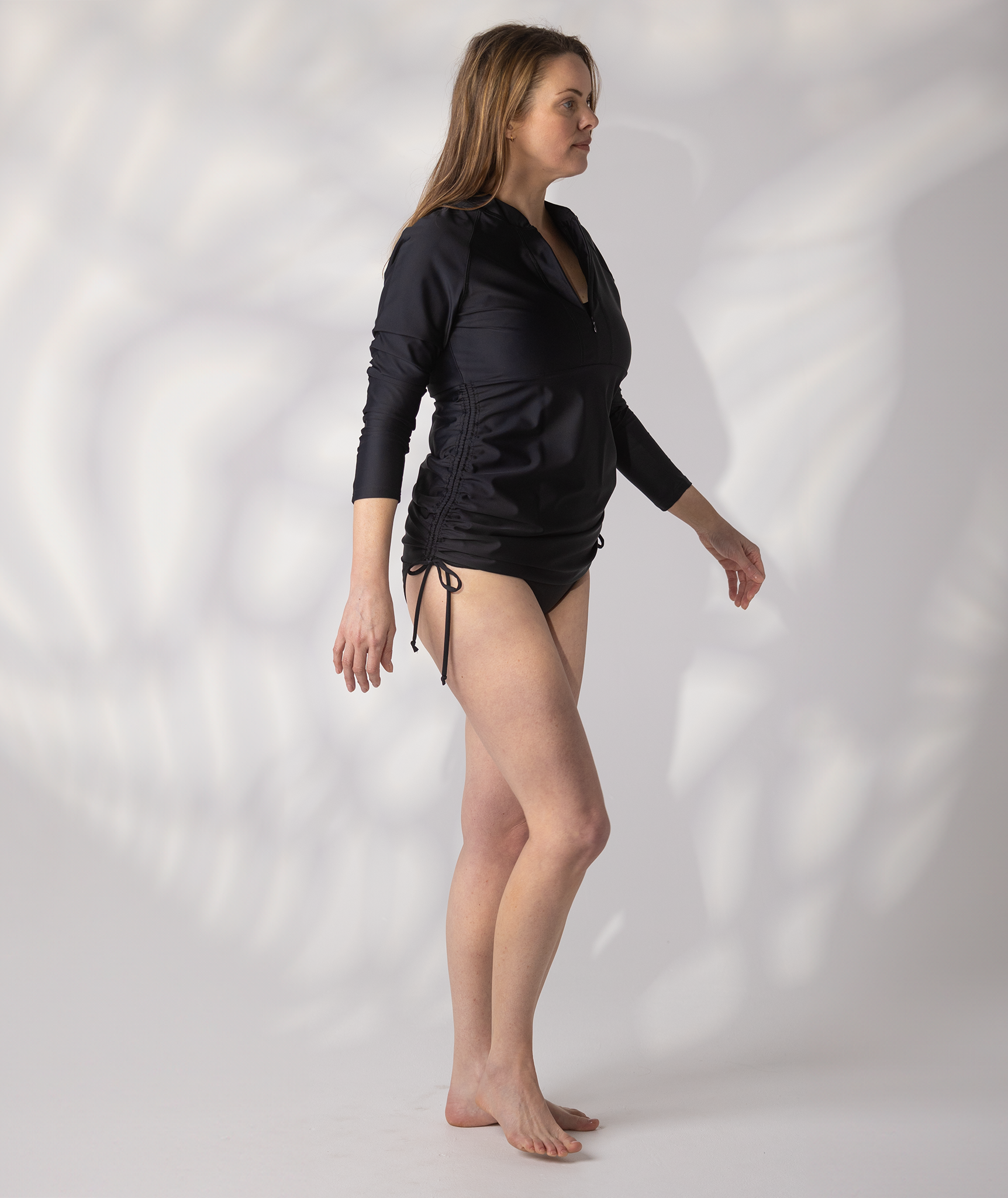 Our collection of women’s rash tops are designed in Australia for real women who want coverage, comfort, and style. Each piece is crafted from quick-dry, chlorine-resistant fabrics that move with you, offering comfortable coverage without compromise. Pair your swim top with our leggings or shorts for a complete look that takes you from a morning swim to a beachside café with ease. Perfect for women 45+ who want modest swimwear with stylish coverage that fits their life.