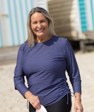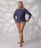 The Suncheeter Crew Neck Swim Top offers UPF50+ protection while providing a comfortable, neat fit perfect for swimming. With ruched sides, you can easily adjust the length for your desired coverage, and this softens the lines across the tummy.